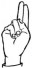 На ћирилици написано БОРИСАВА РАДОВАНЧЕВИЋ састоји се из 20 слова [?]. Исписано ћириличном једноручном азбуком за глувонеме: